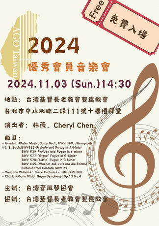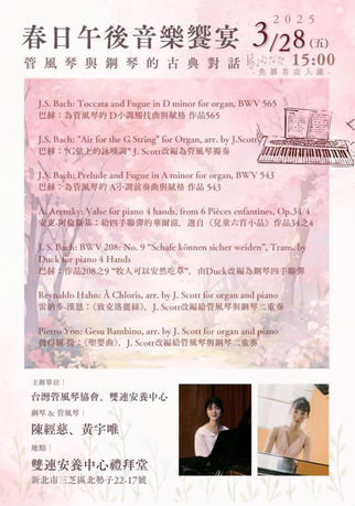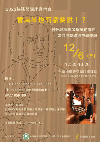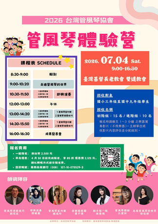 ※2026年上半年預計會舉辦尚傑生老師與陳相瑜老師的管風琴講座暨管風琴工作坊,精彩可期,敬請期待!